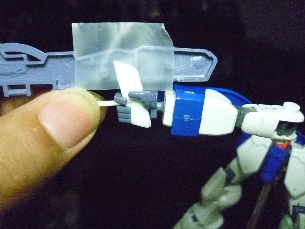 One small but MAJOR modification I did to this kit was to change the handles of the twin buster rifle, since it can't hold them properly at all... Everytime I made Wing Zero hold the rifle, it falls. So I made new handles from Pla-plates. (Hells Yeah!!!)