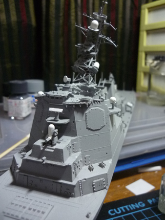 Before painting the whole ship, I added a few metal wires to the broken radar tower for additional support...